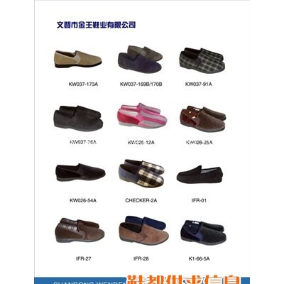 文登市金王鞋业有限公司,位于山东半岛的东部——文登市。建于1979年,是生产各种注塑鞋和硫化橡胶鞋的专业厂家。八九年升为国家二级企业,九零年被核定为中型一级企业。现拥有职工300人左右,固定资产300多万,国内一流设备200多套,年生产能力200多万双。经过二十多年的努力,已成为山东省最大的出口布鞋生产基地。
